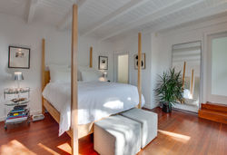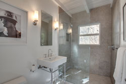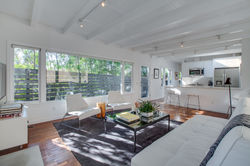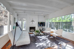 Early Mid Century Nichols Canyon post and beam cottage updated and redesigned with style, form and function for today’s modern living. Enter this completely private and quiet sanctuary to an open concept kitchen and living room with original hardwood floors throughout. The functional kitchen has Bosch and Electrolux stainless steel appliances along with a discreetly placed full sized, stacked Kitchen Aid washer and dryer. The living room boasts a gas fireplace opening onto the outdoor dining room and adjacent multiple patio chill lounges with exterior lighting and custom Sunbrella cushions where you can enjoy your canyon and sunset views. The bathrooms both have Duravit sinks, Kohler fixtures and limestone flooring and the bedroom is outfitted with custom closets. The house is fully wired for sound with an interior Bose speaker system and a Nest front door camera and thermostat. The exterior of the home has just been painted along with a newly installed modern gutter system.